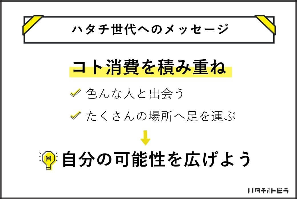 学生時代には、ぜひ「コト消費」を積み重ねてほしいと思います。