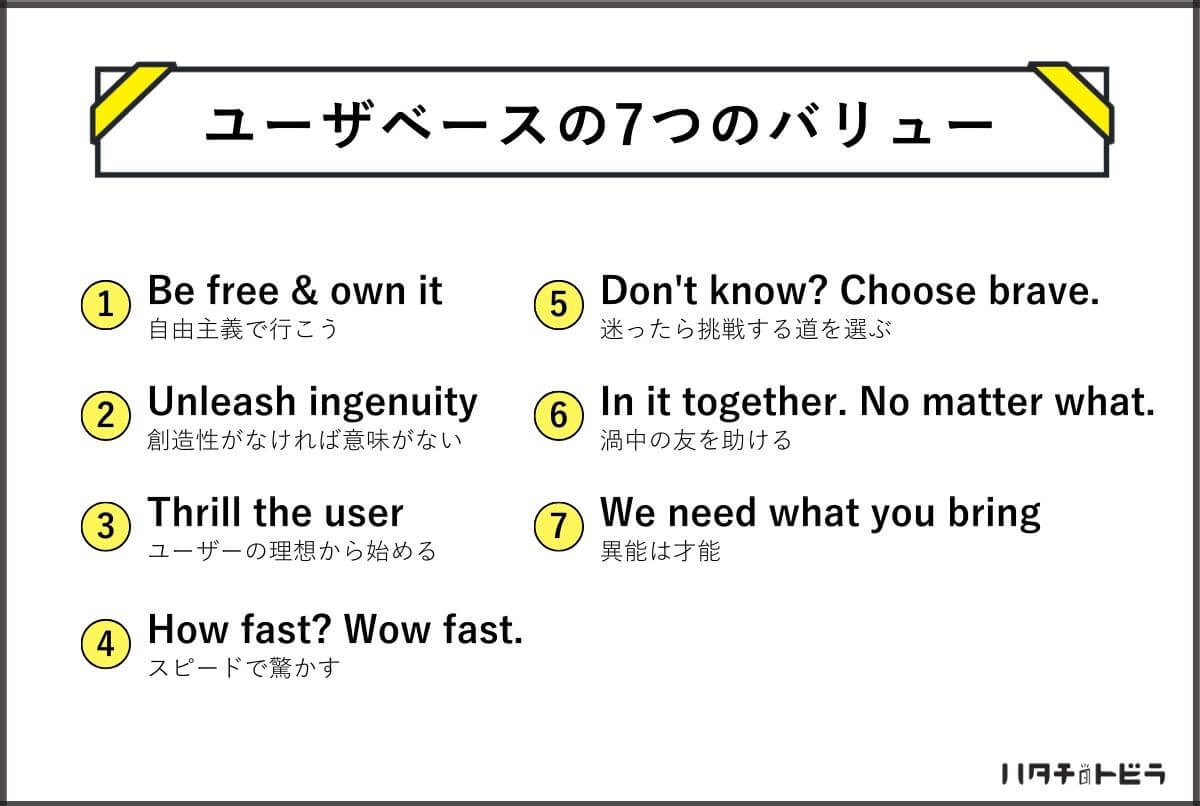 私たちが掲げる「7つのバリュー」への共感にもこだわっています。